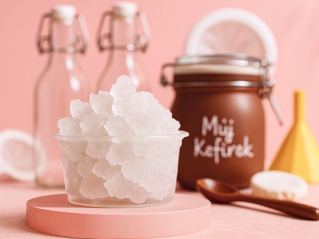 ⚠️ Hned jak si krystaly vyzvedneš, ulož je do vody s cukrem. Potom se můžeš rozhodnout, jestli začneš vyrábět kefírkádu, nebo je dáš do lednice k hibernaci. Důležité je, aby byly vždy v cukerném roztoku.